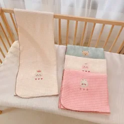 This adorable 4-piece baby accessory set in soft blue features a cute bunny theme with embroidered accents. Includes a hat, mittens, booties, and a bib—perfect for keeping newborns warm and stylish.